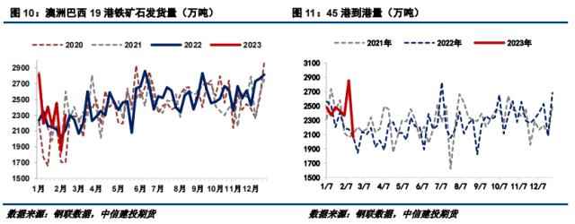 供给端对于短期矿价的影响偏中性。本期澳巴发运由降转增,环比增452.3万吨至2303.2万吨。今年一季度主流矿山的整体发运趋势略高于近三年平均水平,各大矿山对于近期的生产规划总体偏积极。然而一季度澳巴地区往往受到飓风及雨季天气的影响,市场对于铁矿供给存在季节性减量的预期。据Mysteel数据,19日巴西圣保罗州北部海岸地区遭受暴雨袭击,引发洪水和山体滑坡,有超过10个城市受灾,其中5个城市宣布进入公共灾难状态。由于暴雨地区离矿山有一定距离,暂时未造成显著影响。