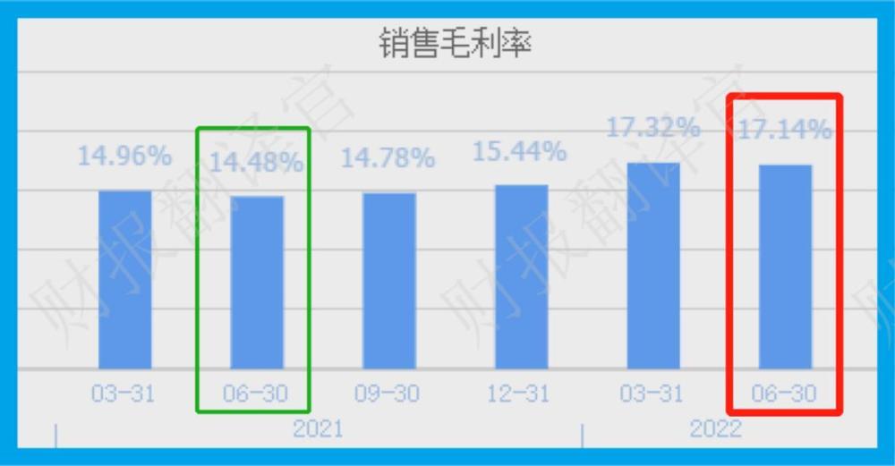 2021年第二季度,这家企业的销售毛利率只有14.48%。而到了2022年第二季度,公司的销售毛利率就达到了17.14%,同比增长了18%。