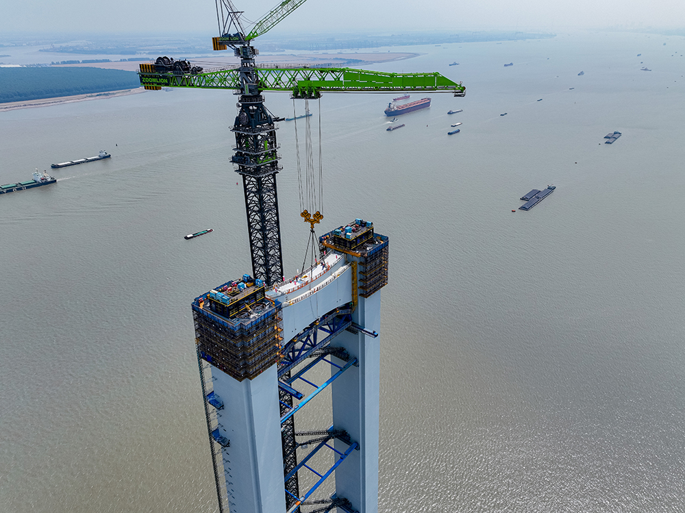张靖皋长江大桥是继苏通长江公路大桥、崇启大桥、沪苏通长江公铁两用大桥之后,中铁山桥为南通建设的又一座超级工程。公司始终践行 “三个转变”,严把质量关、环保关、安全关,以高质量交付建设高质量大桥,奋力冲刺主塔封顶全年建设目标,打造万里长江上的世界最高悬索钢塔,为建设社会主义现代化强国贡献中铁力量。