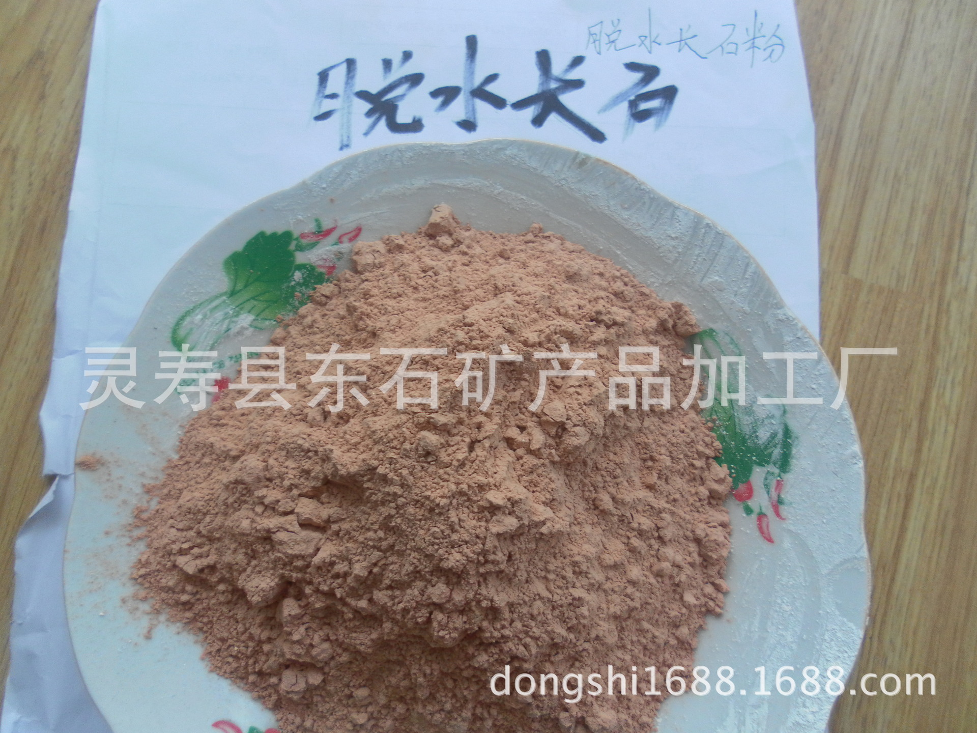 我厂生产的脱水煅烧钾长石粉,广泛用于特种焊条和真石漆上。恒温焙烧多天,使产品中的自然结晶水烧失,含水量为0.001