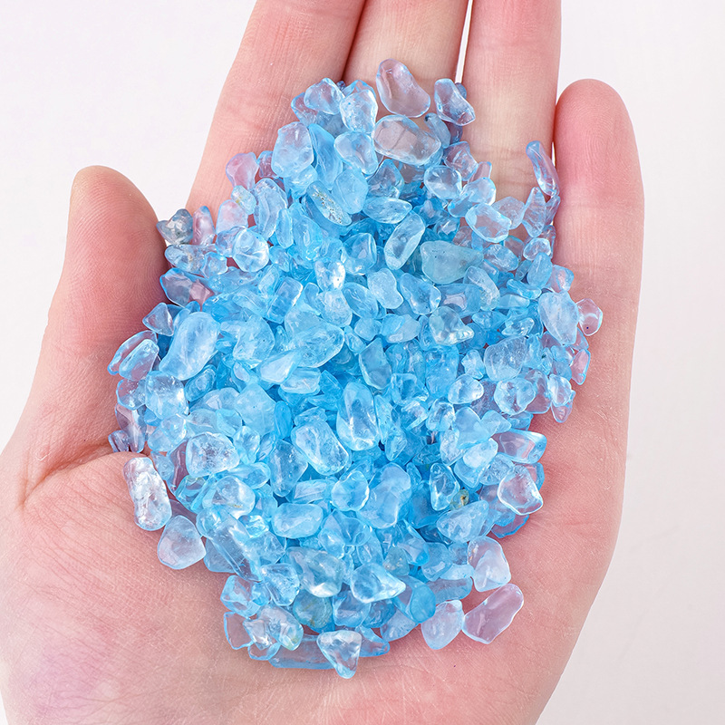 天然水晶碎石批发 加色蓝色水晶碎石 家居装饰消磁石铺路装饰石子