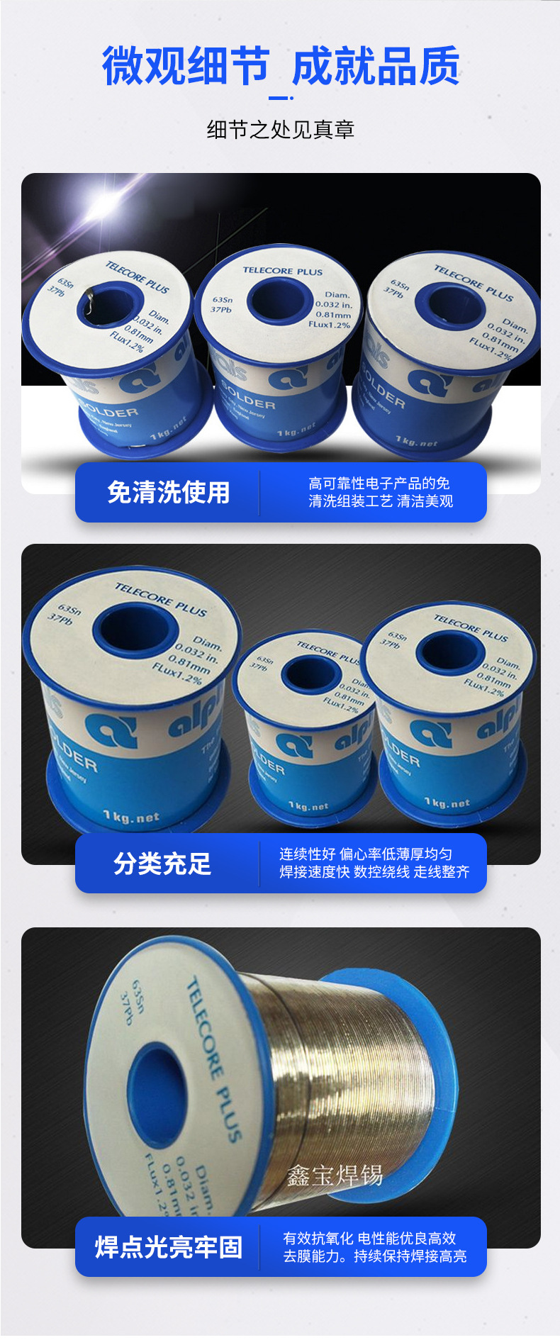 免洗非卤素易上锡 阿尔法低熔点焊锡丝 焊点光亮饱满焊接少烟锡丝