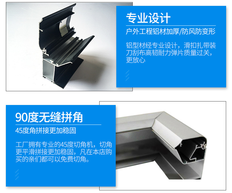 供应商场广告高清LED平面uv软膜6*9拉布灯箱铝合金型材边框黑白色