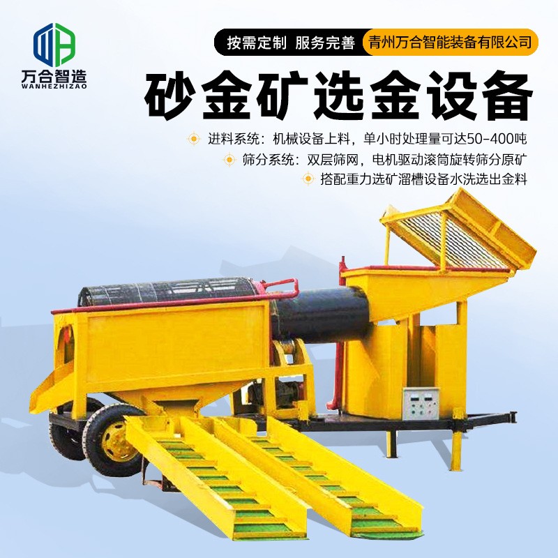 金矿筛分提取金粒设备 矿山旱地河流砂金水洗滚筒筛 选矿淘金车