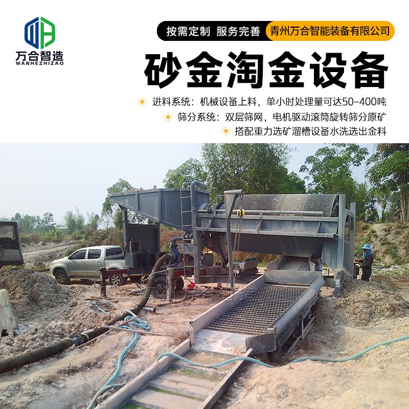 水洗砂金提取设备 滚筒筛选金机鼓动溜槽重选 移动式淘金设备