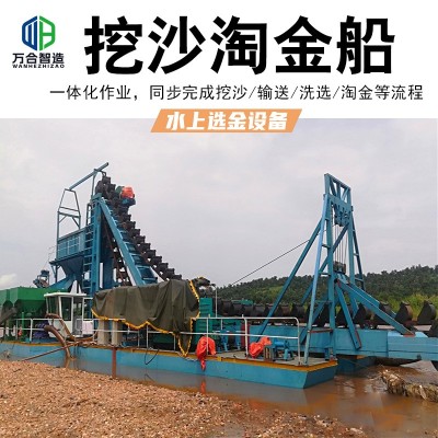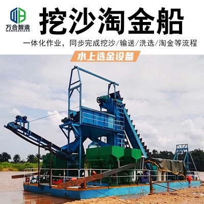 链斗式河道挖沙淘金船 尾矿库射吸式抽沙选金设备 水力选矿采金船
