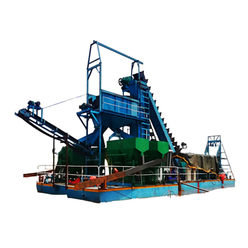 挖斗淘金船 河道矿砂洗选金机器 河道开采水上挖沙选金设备