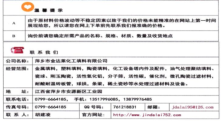 | 产地/厂商 | 江西 / 萍乡市金达莱化工填料有限公司 |