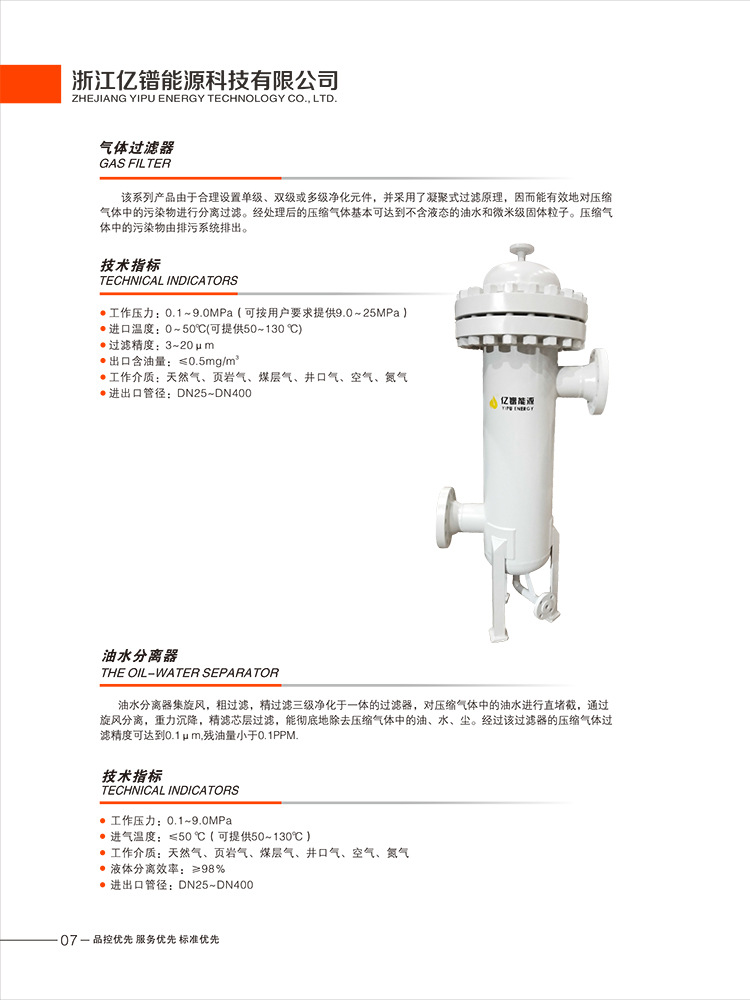 天然气脱水装置+天然气干燥器+CNG脱水装置+天然气干燥机 YNG系列天然气脱水装置,天然气干燥器,放置于加气站的压缩机前,对天然气中的微量水分进行深度脱除,使得天然气在压缩过程及储存环节中不会产生凝析水,天然气脱水装置保障压缩机的正常运行和天然气在存储、运输及使用过程的安全。 天然气脱水装置采用整体撬装式,双塔结构,一塔吸附,另一塔再生。天然气脱水装置吸附饱和时两塔自动切换,双塔交替进行,实现不间断地脱水。装置塔径相对小,床层高,分子筛装填量大。水分吸附量大,吸附周期长,脱水深度低,可连续工作运行,不间断输出低于-50℃~-70℃纯净、干燥气体。 天然气脱水装置核心技术Ⅰ. 天然气脱水装置独特的塔体内结构设计,不仅保证分子筛的压紧,而且使塔体内所有分子筛均处于工作状态,充分提高分子筛的利用率,延长吸附时间,降低切换频率,提高设备使用寿命。 Ⅱ. 天然气脱水装置再生方式选用闭式等压循环,实现再生气的零排放,避免气源浪费,更环保。 Ⅲ. 天然气脱水装置吸附-再生过程人工切换,其它全自动控制和显示,并可通过上位系统进行实时数据的远程显示和控制。1.制氮机工作原理变压吸附制氮机是根据其吸附剂(碳分子筛)在不同压力下吸附能力变化来获取氮气的设备。在一定压力下,空气通过分筛床层时,其中氧在碳分子筛表面的扩散速率远大于氮,从而使得氧分子被碳分子筛吸附,而氮分子得以集聚。设备通过可编程控制器一定时序控制各个阀门启闭,达到A、B两塔加压吸附而减压脱附的循环交替,完成氧氮分离,得到所需纯度的氮气。 2.制氮机装置性能特点1)制氮机独特的吸附塔结构和工艺,避免吸附剂浮动、粉化,易于大型化。2)制氮机独特的内部构件,气流分布均匀,减轻高压气流对碳分子筛的冲击3)制氮机操作简便,运行稳定,自动化程度高,可实现全自动运行。4)制氮机自动联锁氮气排空装置,保证产品氮气质量。5)制氮机可选配氮气装置流量,纯度自动调节系统,远程监控系统等。 3.制氮机技术指标1)氮气流量:5-5000NM3/h2)氮气纯度:95-99.999%3)氮气压力:0.05~1.0Mpa可调4)露点-40℃~-70℃浙江亿镨能源科技有限公司简介:浙江亿镨能源科技有限公司成立于2013年4月,亿镨能源专业从事气体净化分离与气体回收业务,致力于新技术,新工艺,新设备和新材料的推广与应用,是一家集科工贸一体的科技型公司。公司主营业务有:天然气脱水装置,过滤器,分离器,气体回收净化设备,空分设备,减温减压装置,管道混合器,压力容器和石油化工设备。公司坚持以科技创新,系统管理**赢商为企业发展宗旨不断进行技术创新,完善产品类目和产品性能,努力为广大客户提供放心稳定的产品和服务。