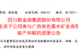 - 四川新金路集团公布子公司参与广西有色栗木矿业有限公司破产和解的最新进展