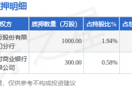 - 盛屯矿业(600711)股东深圳盛屯集团有限公司质押1300万股,占总股本0.42%