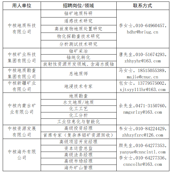 “致天下之治者在人才”,中核铀业始终坚持“人才强企、人才兴企”战略,致力于培养引进一批善于凝聚力量、勇攀科技前沿的科技领军人才,以及具有全球视野、敢为人先的企业家和善于创新、精益求精的高技能人才,现面向全球招聘国际化高级人才。