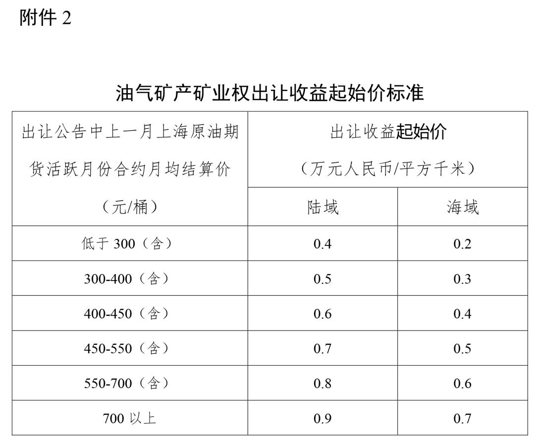二、油气矿产矿业权出让收益起始价标准按附件2执行。