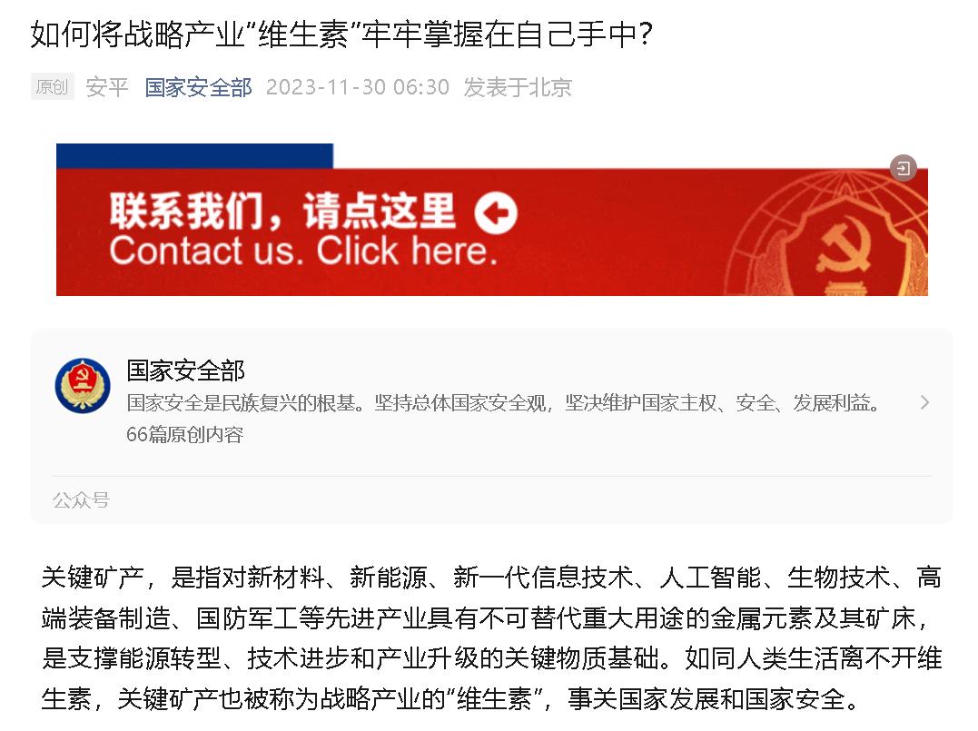 01 国家安全部:关键矿产已成为全球主要大国战略博弈的新领域