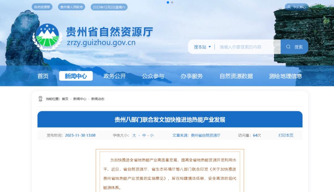 02 贵州省八部门发文加快推进地热能产业发展,积极培育本土企业参与地热能资源勘查开发利用