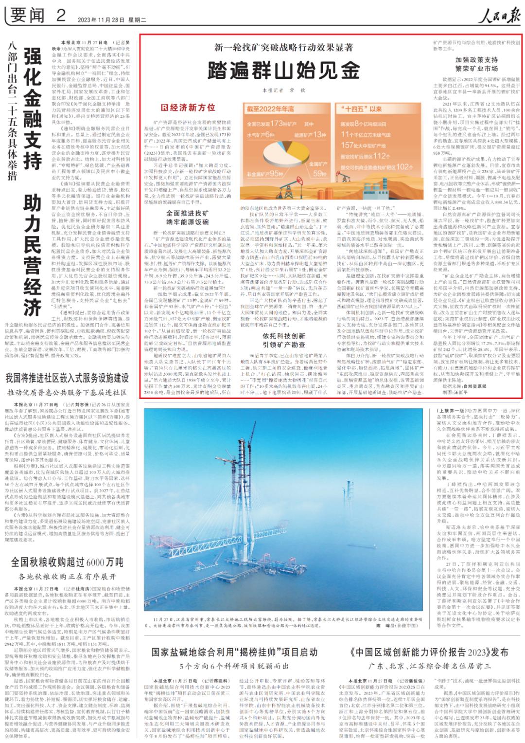 矿产资源是经济社会发展的重要物质基础,矿产资源勘查开发事关国计民生和国家安全。截至2022年年底,全国已发现173种矿产;2022年,我国近四成矿产储量均有上升……日前发布的《中国矿产资源报告(2023)》显示,我国推进实施新一轮找矿突破战略行动效果显著。