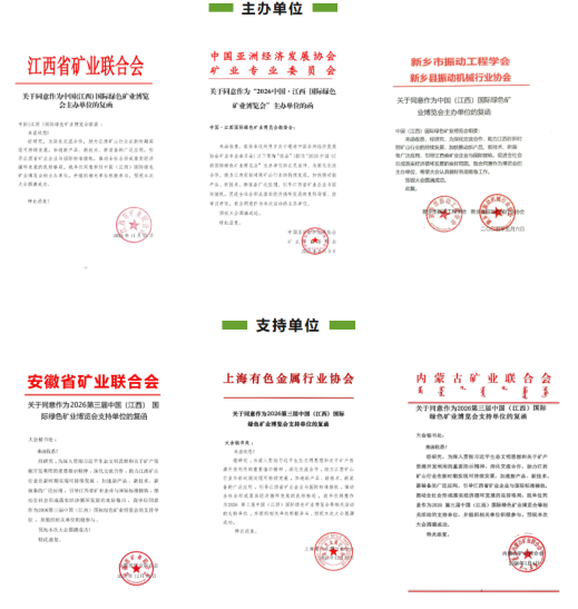 我们坚信,在各行业协会的鼎力支持、全产业链企业的积极参与、社会各界的广泛关注下,2026第三届中国(江西)国际绿色矿业博览会必将成为一场规格高、影响广、实效强的国际矿业盛会,为推动全国绿色矿业转型升级、助力江西打造世界级矿业基地贡献重要力量!