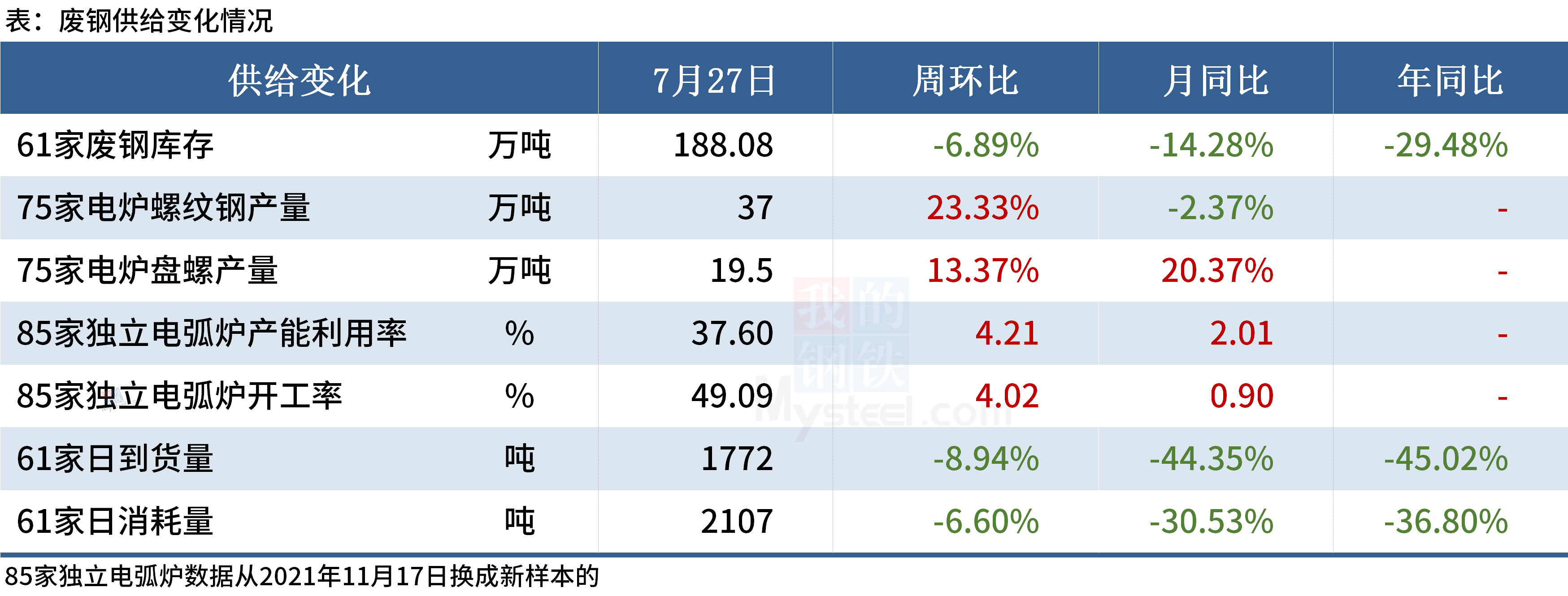 上周独立电弧炉开工率和产能利用率增加明显,开工率恢复至接近50%水平,短流程钢厂用废需求明显回升。而长流程钢厂来看,螺废差、板废差变化不大,长流程钢厂利润仍处在盈亏线边缘,未有明显好转,同时铁废差因废钢价格的反弹而出现了明显的收缩,不过废钢经济效益仍在。供给面来看,市场整体废钢资源产出有限,叠加部分地区疫情反复,上周61家钢厂废钢日均到货较上周继续下降8.94%,废钢供应端依旧偏紧。需求面来看,电炉厂复产补库带动废钢需求出现一定回暖,对废钢价格形成一定支撑,但长流程钢厂用废需求仍未改善,61家钢厂废钢日耗继续下降。另外随着美联储加息靴子的落地,市场紧张的情绪有所缓和。综合判断,预计本周废钢价格或延续反弹上涨趋势,但也要警惕急速拉涨带来的回落风险。