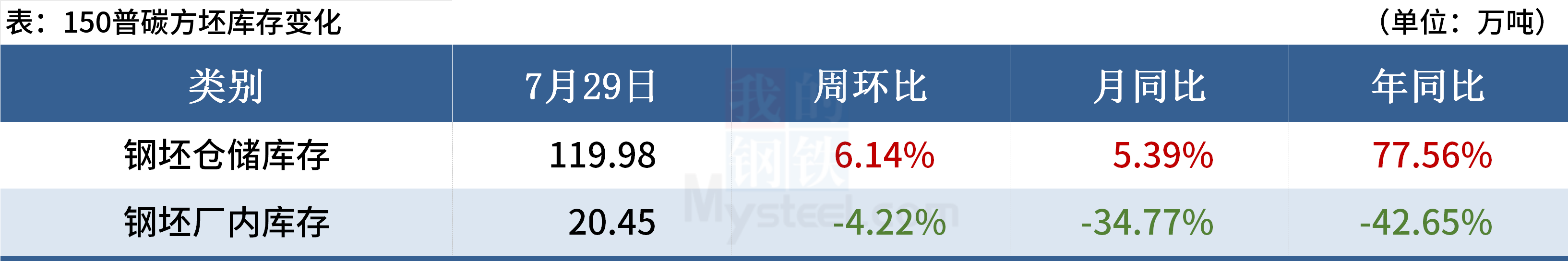从目前市场来看,焦炭(2955, 45.00, 1.55%)第五轮降价落地,钢企成本压力缓解,届时高炉产能利用率或回升,钢坯供应量或继续增加。而需求方面,近期下游轧钢企业钢坯日均需求仍处于偏低水平,短期虽有修复空间,但以目前形势来看,增量有限,因此近期供需矛盾仍将持续。另外考虑到本周钢坯库存止降反增,同时下游采坯热情仍显一般,因此部分商家仍担忧钢价涨后需求跟进情况。然随着美联储加息靴子落地,商家反馈短期利空消息几乎出尽,加之中央政治局会议召开在即,利好消息或逐步释放,整体情绪或逐步稳定向好运行。另外目前下游轧钢企业厂内钢坯库存继续维持低位(多数在0-3天水平),一旦后期需求预期及轧钢利润有所好转,复产局面带来的集中补货行情或增,这对坯市或起到一定支撑。因此综合预计近期钢坯市价或继续震荡趋弱运行。