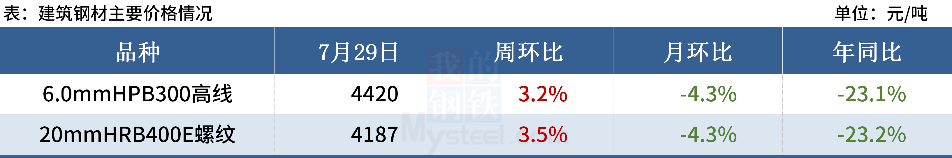 上周全国建筑钢材价格稳步上行。具体来看,产量和库存延续下降态势,库存的持续去化和表观需求的向好带动了价格上行,市场信心得到回升。不过,伴随着期螺的持续上涨,现货价格上涨节奏也在不断加快,市场也累计了一定的风险,本周整体价格有望呈现稳步上涨态势、需要关注市场高价套现带来的回调风险。