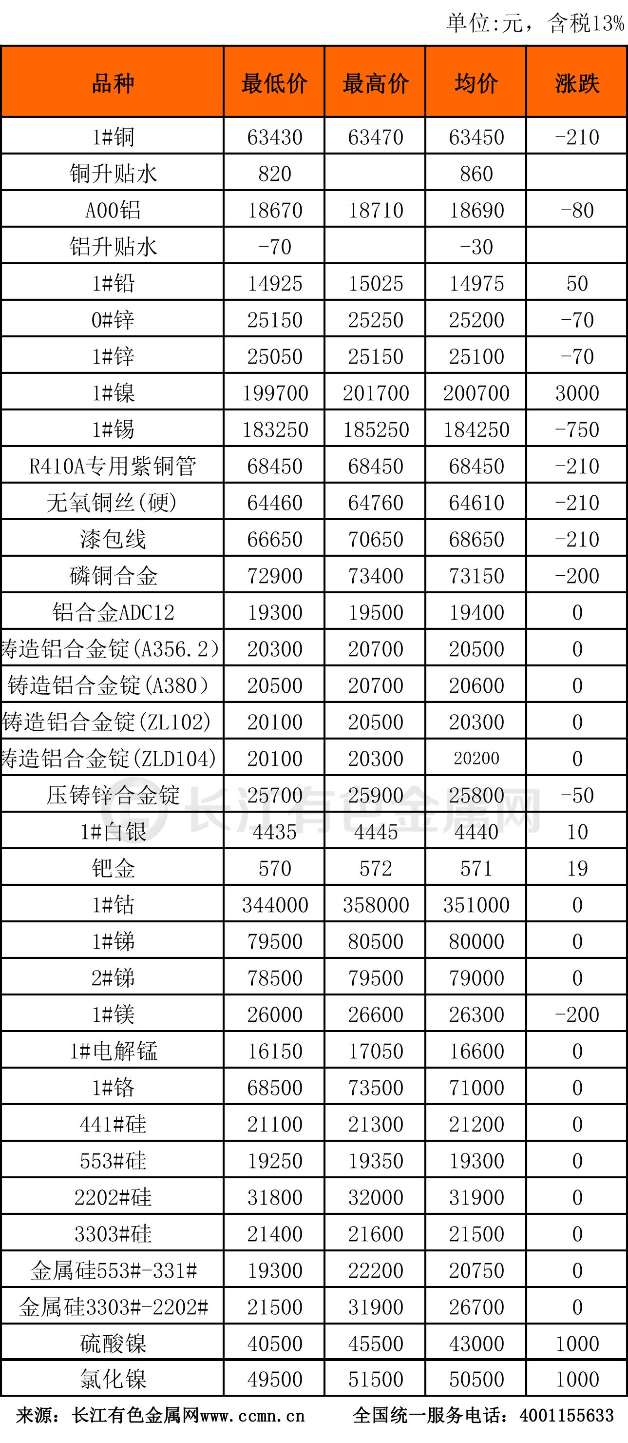 9月20日长江有色金属现货行情