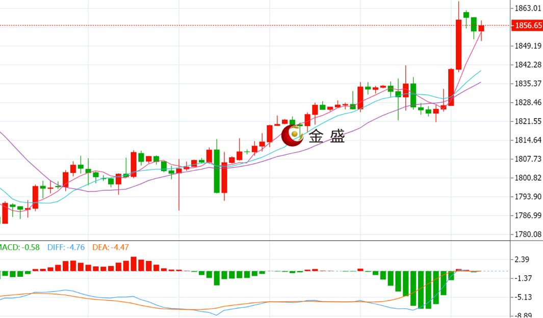 现货黄金周一(2月14日)开市于1861.51美元/盎司,盘中震荡回撤,从上一交易日触及的去年11月19日以来高位1865.48美元回落,受美债收益率走强的打压。不过金价跌幅有限,因围绕乌克兰的紧张局势加剧,支撑了对黄金的避险需求。投资者继续关注俄罗斯和乌克兰紧张局势的发展。黄金技术面分析: