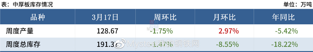供应层面,近期钢厂周度产量或仍将维持125-130万吨之间,不过受部分区域疫情影响,厂库转移不畅,预计后期生产端压力或逐渐凸显;流通环节,近期行情波动十分频繁,基本几天变换一次方向,导致贸易商心态多以谨慎观望为主,且国内部分区域疫情仍有较强不确定性,所以短期贸易商仍以降库为主,囤货积极性不高;需求方面,从周度表观消费量、3月钢厂接单及1-2月工程机械、造船等数据来看,目前需求远不及去年同期,但随着国内宏观政策趋好,后期需求或将继续回升。综合预计,短期市场供需双强,预计本周中厚板价格以震荡偏强为主。