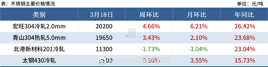 3月份不锈钢供应压力有所加大,不锈钢价格仍有下跌空间,一旦价格达到心理预期,贸易商也会适度补库,对价格形成支撑。继续关注盘面波动及国内疫情发展,若疫情转好不锈钢需求将有一波集中释放,另一方面不锈钢成本方面支撑仍然较强,预计短期304价格维持高位震荡运行。