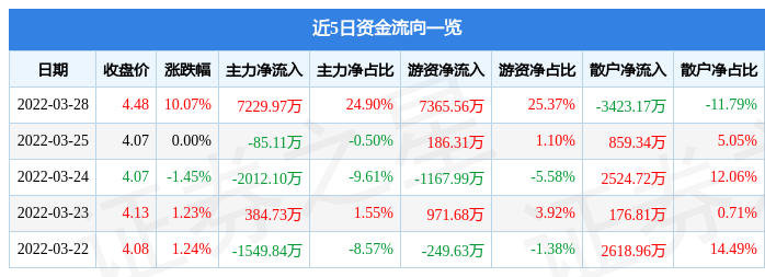 资金流向数据方面,当日主力资金净流入7229.97万元,游资资金净流入7365.56万元,散户资金净流出3423.17万元。近5日资金流向一览见下表: