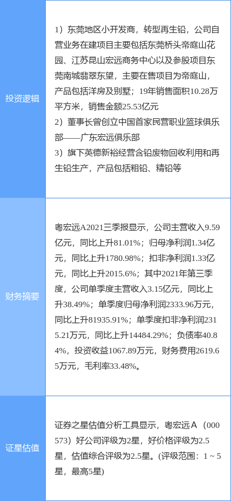 粤宏远A涨停收盘,收盘价4.48元。该股于10点10分涨停,未打开涨停,截止收盘封单资金为4251.64万元,占其流通市值1.5%。