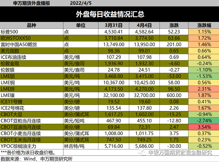 近期国内疫情多点爆发,各地管控方式不断升级,预计对后续下游需求持续拖累。海外方面,4日美国2年期与10年期再度倒挂,衰退风险进一步加大。欧央行管委表示负利率预计在今年结束,同时由于通胀超预期最快7月结束QE.俄乌冲突后续影响可能削弱美元主导地位,各国外汇储备配置趋向于多元化。