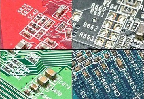 透明阻焊漆只能露出PCB底色,这样无论是制造、维修还是销售,外观都不够好看。因此工程师们在阻焊漆中加入了各种各样的颜色,就形成了黑色或者红色、蓝色的PCB。