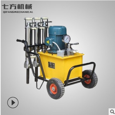 1)液压分裂机是以动力站(有电动型动力站和 柴油机型动力站)产生的高压液压油为能量源,通过油管输送到各个分裂机 又名劈裂枪)的油缸管控制