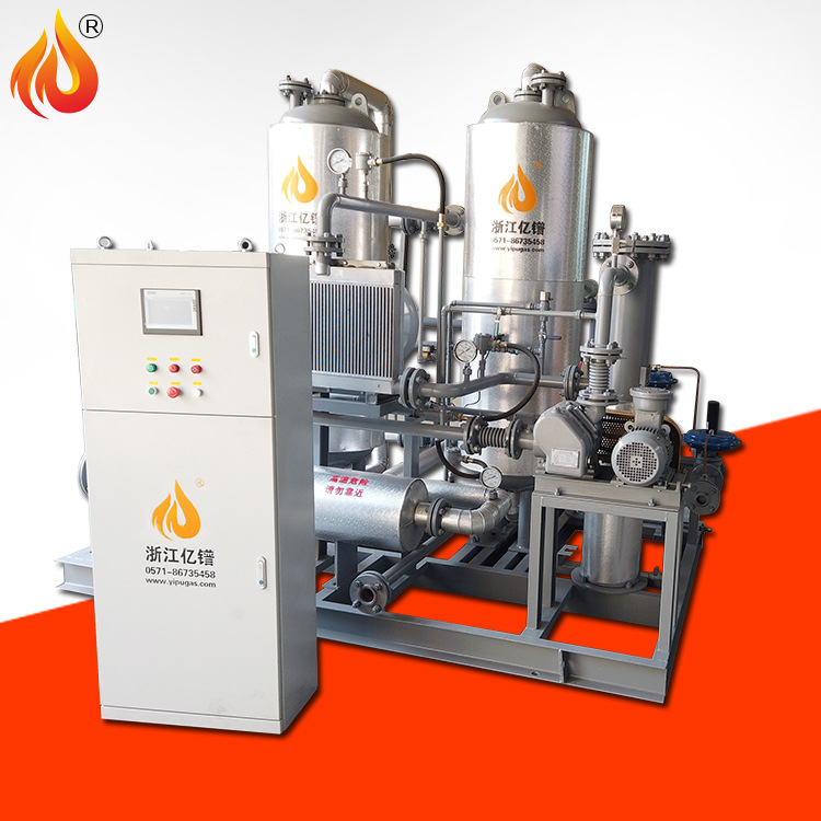 天然气脱水装置+天然气干燥器+CNG脱水装置+天然气干燥机 YNG系列天然气脱水装置,天然气干燥器,放置于加气站的压缩机前,对天然气中的微量水分进行深度脱除,使得天然气在压缩过程及储存环节中不会产生凝析水,天然气脱水装置保障压缩机的正常运行和天然气在存储、运输及使用过程的安全。 天然气脱水装置采用整体撬装式,双塔结构,一塔吸附,另一塔再生。天然气脱水装置吸附饱和时两塔自动切换,双塔交替进行,实现不间断地脱水。装置塔径相对小,床层高,分子筛装填量大。水分吸附量大,吸附周期长,脱水深度低,可连续工作运行,不间断输出低于-50℃~-70℃纯净、干燥气体。 天然气脱水装置核心技术Ⅰ. 天然气脱水装置独特的塔体内结构设计,不仅保证分子筛的压紧,而且使塔体内所有分子筛均处于工作状态,充分提高分子筛的利用率,延长吸附时间,降低切换频率,提高设备使用寿命。 Ⅱ. 天然气脱水装置再生方式选用闭式等压循环,实现再生气的零排放,避免气源浪费,更环保。 Ⅲ. 天然气脱水装置吸附-再生过程人工切换,其它全自动控制和显示,并可通过上位系统进行实时数据的远程显示和控制。1.制氮机工作原理变压吸附制氮机是根据其吸附剂(碳分子筛)在不同压力下吸附能力变化来获取氮气的设备。在一定压力下,空气通过分筛床层时,其中氧在碳分子筛表面的扩散速率远大于氮,从而使得氧分子被碳分子筛吸附,而氮分子得以集聚。设备通过可编程控制器一定时序控制各个阀门启闭,达到A、B两塔加压吸附而减压脱附的循环交替,完成氧氮分离,得到所需纯度的氮气。 2.制氮机装置性能特点1)制氮机独特的吸附塔结构和工艺,避免吸附剂浮动、粉化,易于大型化。2)制氮机独特的内部构件,气流分布均匀,减轻高压气流对碳分子筛的冲击3)制氮机操作简便,运行稳定,自动化程度高,可实现全自动运行。4)制氮机自动联锁氮气排空装置,保证产品氮气质量。5)制氮机可选配氮气装置流量,纯度自动调节系统,远程监控系统等。 3.制氮机技术指标1)氮气流量:5-5000NM3/h2)氮气纯度:95-99.999%3)氮气压力:0.05~1.0Mpa可调4)露点-40℃~-70℃浙江亿镨能源科技有限公司简介:浙江亿镨能源科技有限公司成立于2013年4月,亿镨能源专业从事气体净化分离与气体回收业务,致力于新技术,新工艺,新设备和新材料的推广与应用,是一家集科工贸一体的科技型公司。公司主营业务有:天然气脱水装置,过滤器,分离器,气体回收净化设备,空分设备,减温减压装置,管道混合器,压力容器和石油化工设备。公司坚持以科技创新,系统管理**赢商为企业发展宗旨不断进行技术创新,完善产品类目和产品性能,努力为广大客户提供放心稳定的产品和服务。