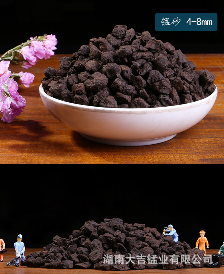 锰砂除铁是一种接触催化除铁工艺,适合于地下水含铁量小于3.0mg/L的除铁。锰砂中含的高价锰能将水中的二价铁氧化成三价铁,同时在表面形成有催化作用的“滤膜”,进一步提高了除铁效果。含铁水经曝气后,只经锰砂一次过滤,就能完成全部除铁过程,常用于饮用水除铁、除锰过滤装置,地下水除铁除锰净化水质使用。