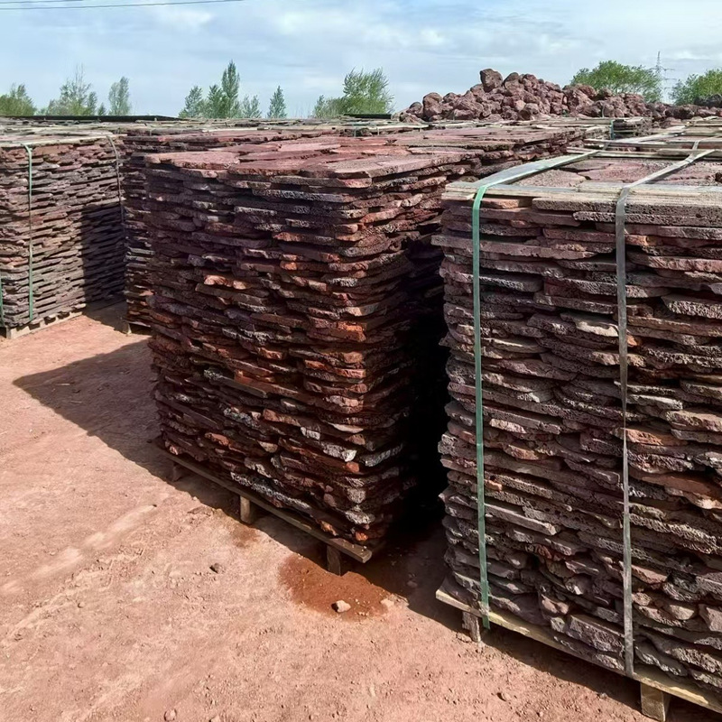 灵寿县东岩矿产品有限公司发布的火山石板现货供应火山石碎拼板蘑菇石单切面双红色黑色天然图集库