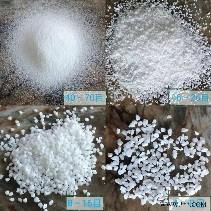 石英砂常用规格有:0.5-1mm、1-2mm、2-4mm、4-8mm、8-16mm、16-32mm、10-20目、20-40目、40-80目、100-120目。