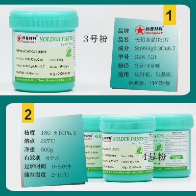 深圳市标普新材料有限公司发布的无铅高温锡膏含银SAC0307焊锡膏SMT贴片锡浆QFN爬锡软板LED焊膏图集库