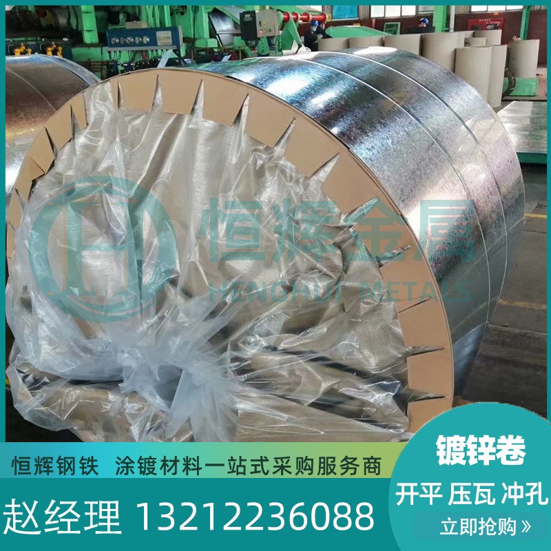 天津恒辉钢铁销售有限公司发布的天津DX54D+Z热镀锌钢卷现货 厂家直发S280GD小锌花热轧民用镀锌卷图集库
