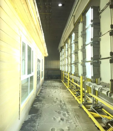 太阳辐射试验是一种人工模拟环境试验, 模拟日照条件的阳光模拟系统它模拟试验品在地面或较低大气层中使用或无遮蔽贮存期间暴露在日辐射条件下受到的影响。该系统根据形式通常分为两类,一类是固定在测试段顶部的,即顶置式;另一类是通过安装一套弧形支架系统,即穹顶式。每个灯源都有独立的电源和控制系统,每个独立灯源上集成有网状挡板和遮光挡板,可以用于模拟车辆在乌云条件下低照射强度环境和通过隧道时的无照射环境。