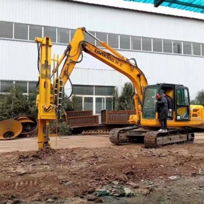 挖改液压冲击钻机,选用国内高品质凿岩机。适用于7 级以上硬度的岩石钻孔,钻孔孔径Φ36—Φ64/Φ70-Φ90mm,钻孔深度1—6米。在普氏硬度35MPA/cm3的岩层上钻孔,可达到1 分钟1 米的速度,单杆可钻深3 米或6 米。具有成本低、效率高的特点,人性化设计,操作简便快捷。