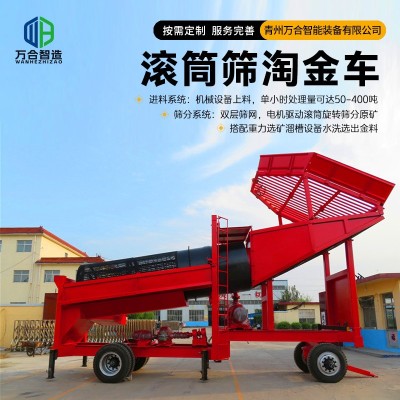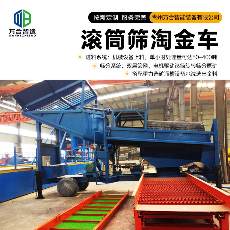 青州万合智能装备有限公司发布的砂金筛分提取设备 圆筒洗矿机搭配溜槽选金 轮胎式移动淘金车图集库